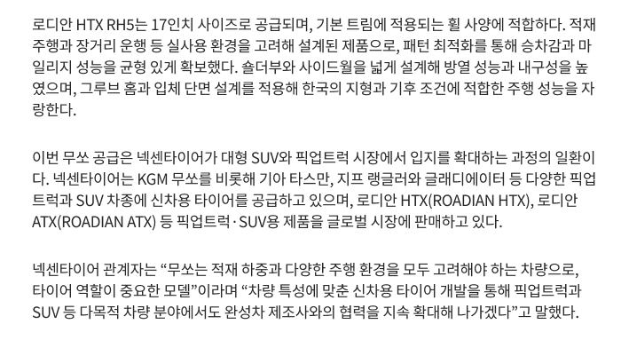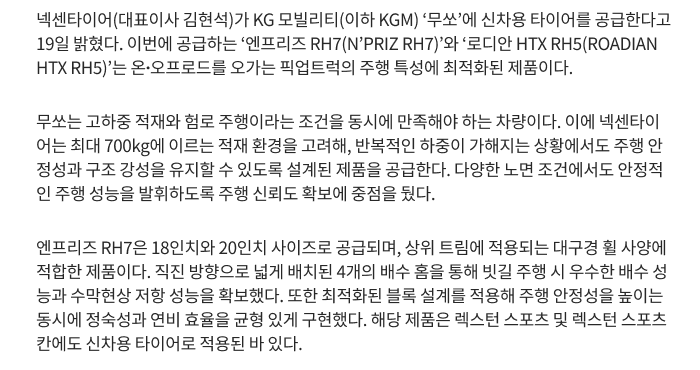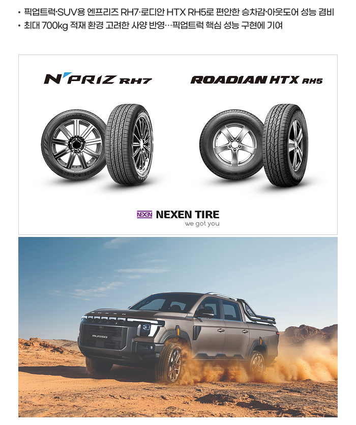 넥센타이어, KGM ‘무쏘’에 신차용 타이어 공급…픽업트럭∙SUV 공략 박차